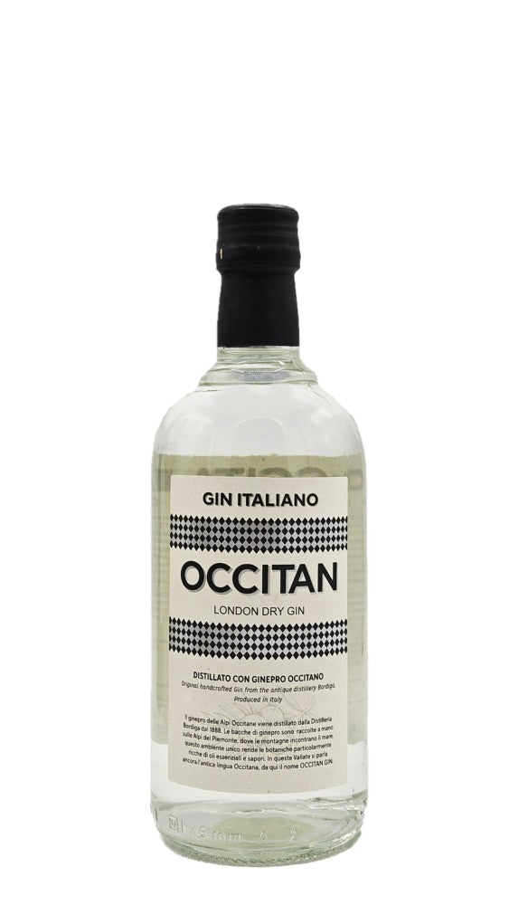 Occitan Gin è un London Dry Gin biologico prodotto da Bordiga a Cuneo, ottenuto da ginepro selvatico raccolto a mano nelle Valli Occitane e botaniche alpine come angelica, cardamomo, coriandolo e agrumi. Distillato in alambicchi di rame secondo la storica ricetta di fine Ottocento, offre eleganza, purezza e un legame autentico con il territorio.